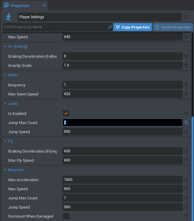 - Dans la section Jump, réglez Jump Max Count sur