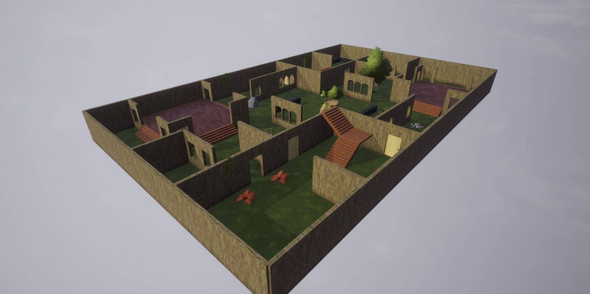 pour passer en mode Aperçu. - Examinez vos éléments de décor du point de vue d'un joueur. Vous pouvez vous approcher d'un buisson, mais celui-ci vous bloquera le passage lorsque vous le touchez.