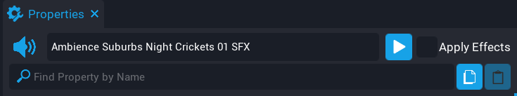 Like many of the other assets in Core such as VFX and materials, there are a handful of audio assets with various smart properties specific to those assets.