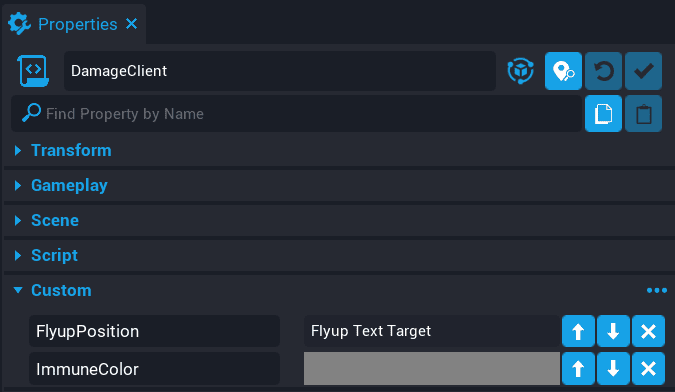 Add the Transition panel onto the PlayerClient script as a custom property. Name the custom property Transition.