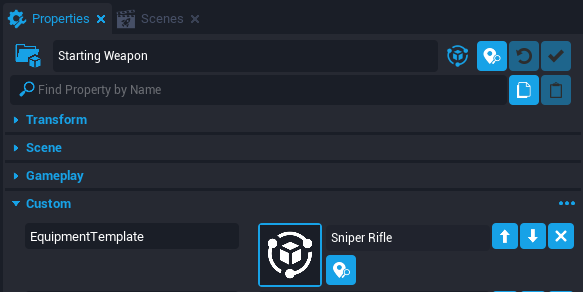 4. Drag and drop the Sniper Rifle template into the EquipmentTemplate custom property.
