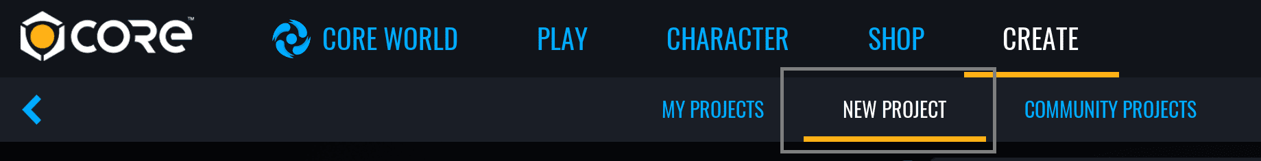 2. Click the NEW PROJECT tab at the top of the CREATE menu.