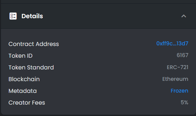 For example, take Bag #6167 from the Loot collection. The URL contains the blockchain the token is on, the contract address, and the token ID.