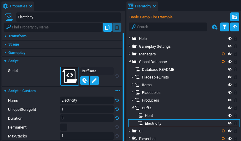 The Producers, Buffs, and Areas Example Project allows creators to design games around producers which transform items into different items over time, buffs which provide customizable restrictions on the producers, and areas which allow the world space to be divided into distinct pieces which can be loaded on demand.
