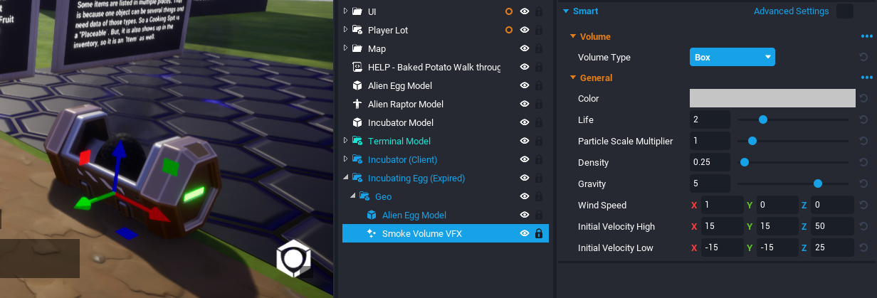 - Select the Smoke Volume VFX and open the Properties window.