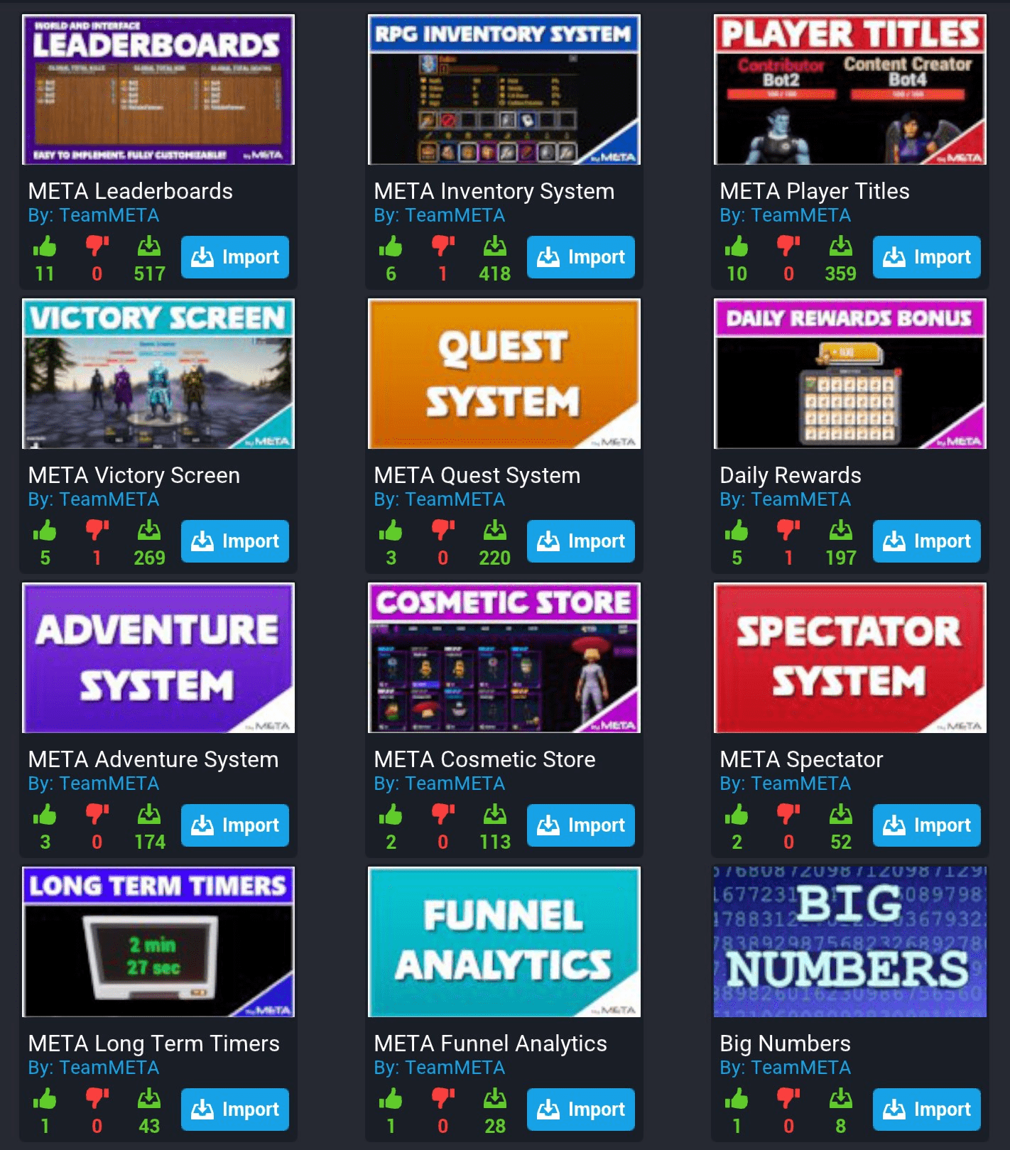 Team META has created a collection of useful creator tools, from leaderboards to inventory systems to victory screens.
