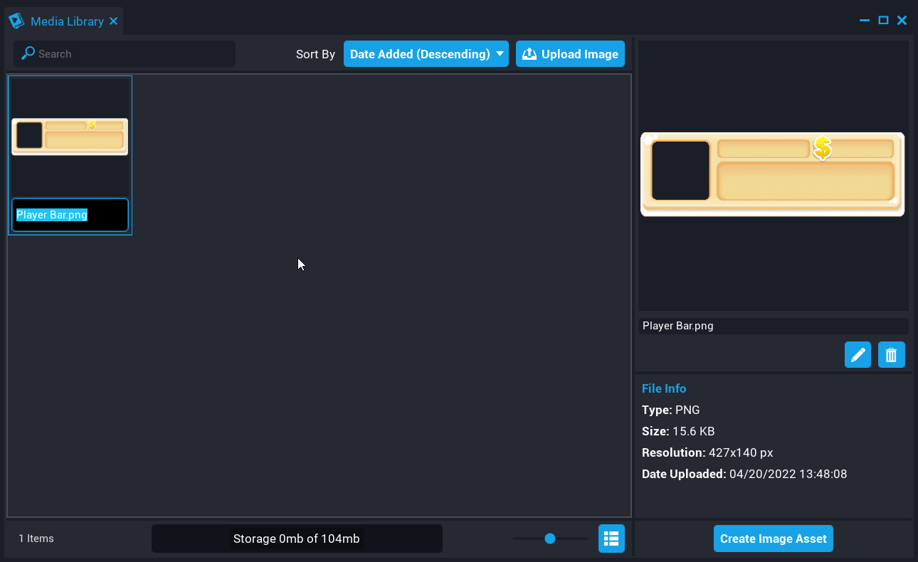Deleting images from the Media Library can be done by right-clicking on the image and selecting Delete, or from the preview panel in the Media Library. Deleting an image will delete it from the Media Library, and brushes that have been created using that image in any of the creator's projects will show up as white in the game as the image will no longer be valid.
