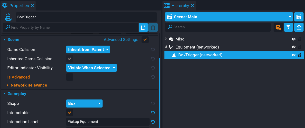 - Click on the BoxTrigger that is a child of the Equipment object.