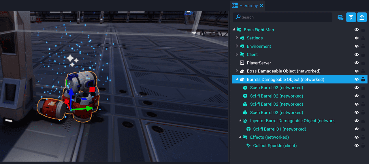 In this tutorial you are going to create a multiplayer boss fight. Players will need to disable all of the generators by inserting a pickup that can be found around the map. After all generators have been disabled, the boss will then be vulnerable to damage.