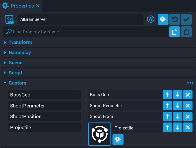 The boss AI will need to know which players are within range so a target can be selected to shoot at. A perimeter trigger will be used to detect players who enter and leave the trigger.