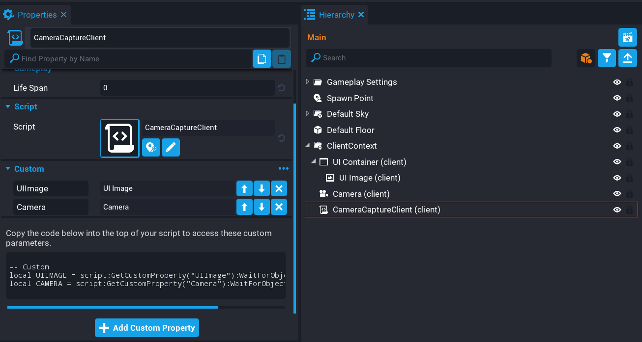local CAMERA = script:GetCustomProperty("Camera"):WaitForObject()