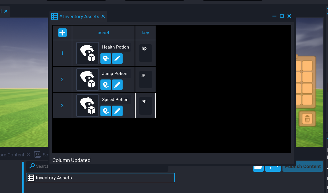 1. Open up the Inventory Assets data table by double-clicking on it from Project Content.