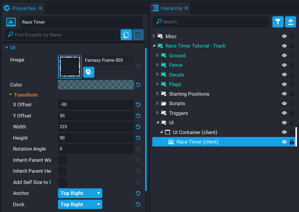 - Drag and drop the template Race Timer Tutorial - Track into the Hierarchy.