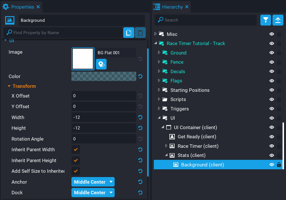 - Drag and drop the effect onto the RaceManager_Client script as a custom property and rename it to