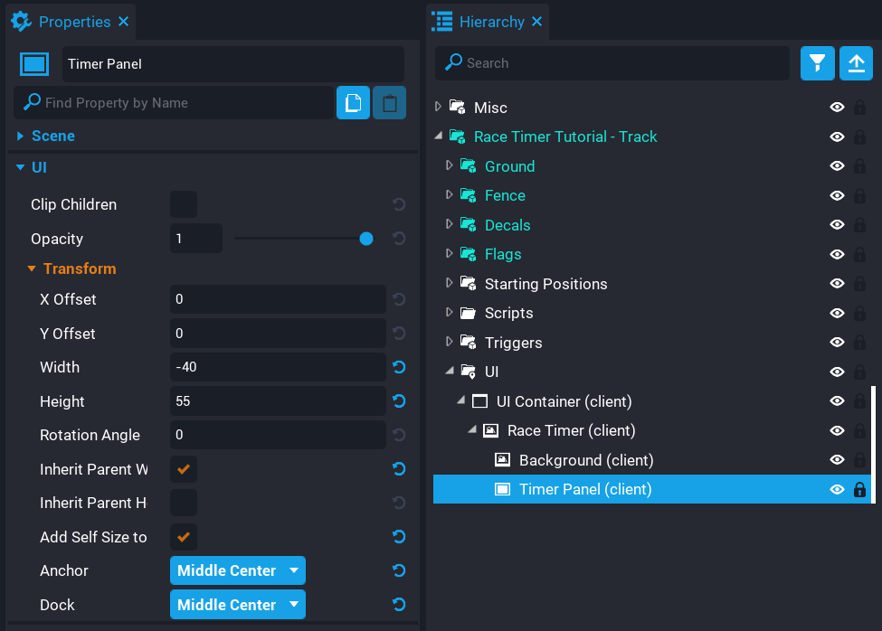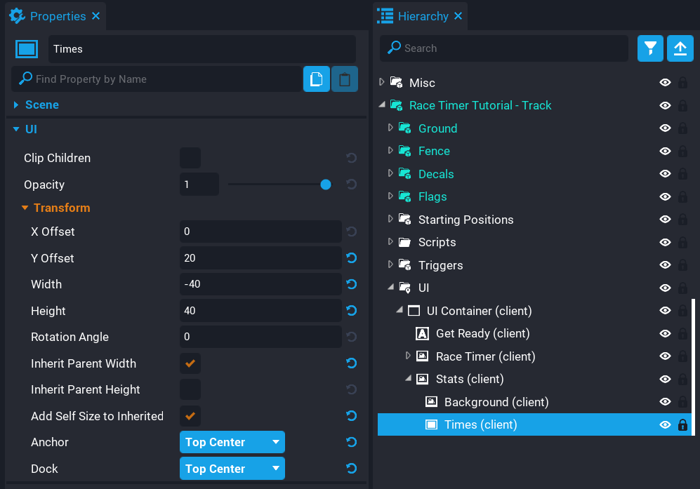 - Create a folder called Scripts inside the Race Timer Tutorial - Track group.