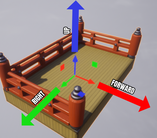 1. Objects that have a position, scale, and rotation, have a Transform](../api/transform.md). No matter what the rotation of the START_AREA is, the platforms will always spawn in the forward direction. By pressing T you can see the transform gizmo change from world space to local space. !Properties