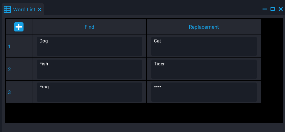 4. Enter some words and replacements into the data table.